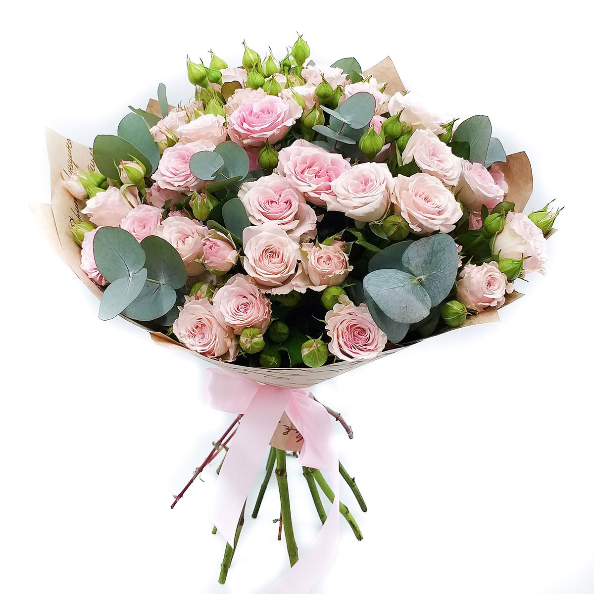 На фото представлен образец. Объем букета зависит от выбранного вами размера. Точное количество цветов и цветовую гамму вы можете уточнить у менеджера по телефону.